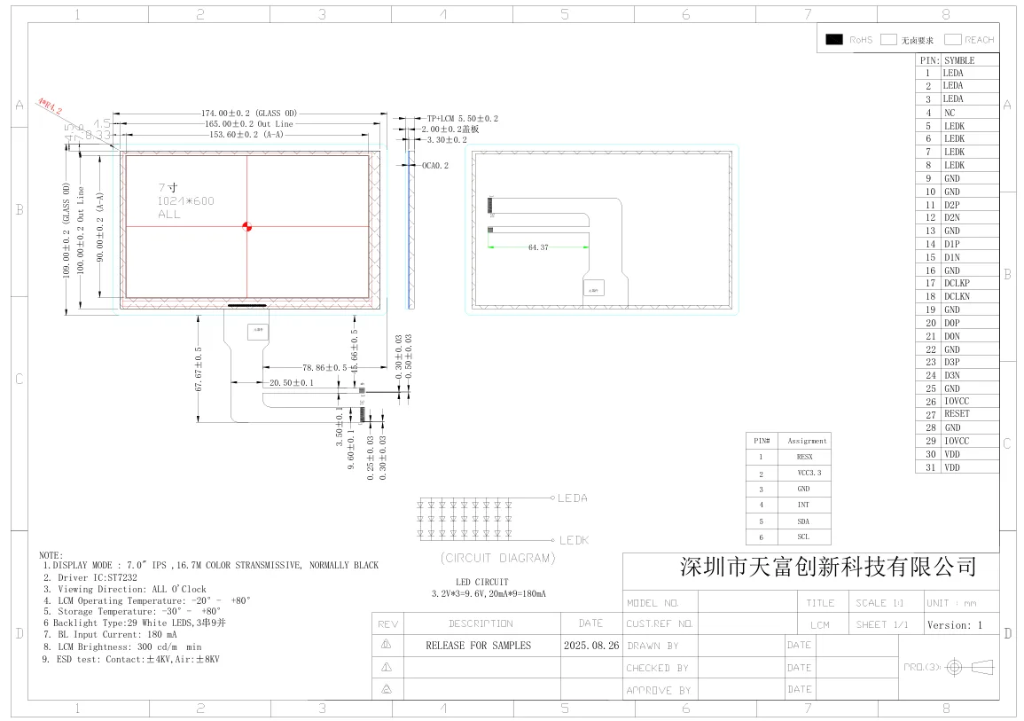 Als erfahrener Hersteller liefern wir langlebige, hochwertige LCDs mit fortschrittlichen Spezifikationen. Ausgestattet mit einem 7,0 Zoll großen ultradünnen IPS-In-Cell-Touchscreen-Modul für Smart Home, einer Helligkeit von 300–350 cd/m² und einem Betrachtungswinkel von 75–80° ist dieses Display auf Langlebigkeit (15.000–20.000 Stunden) und stabilen Betrieb ausgelegt. Smart-Device-Anwendungen (tragbare medizinische Geräte/Smart Home Control Hubs).